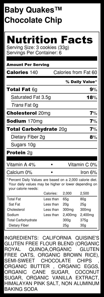 Discover Baby Quakes™ Chocolate Chip Cookies, delightful gluten-free bites made from organic quinoa that pack a chocolatey punch! These mini cookies are perfect for snacking on the go or sharing with friends—no GMOs ever, because we’re way too clever and so are you! Each bite brings wholesome sweetness in a small package, making treat time both fun and nourishing. With a heart for making kids of all ages healthy and strong, Baby Quakes™ are your go-to for gluten-free goodness with California Quisine!
