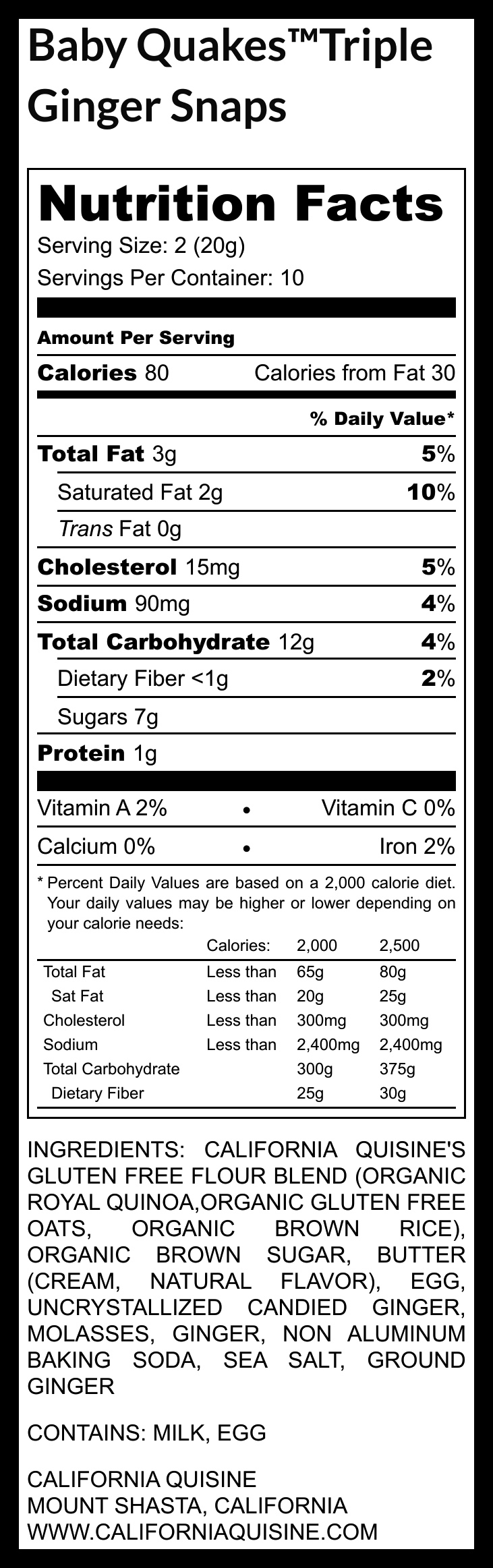 Enjoy the bold flavor of Baby Quakes™ Triple Ginger Snaps, the ultimate gluten-free ginger cookies made with organic quinoa. These healthy, non-GMO snacks are perfect for kids and adults, offering a crunchy bite with a triple ginger kick. These organic cookies are gluten-free, wholesome, and delicious-crafted by California Quisine for families seeking better-for-you treats.
